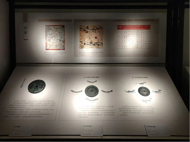 銅鏡已經走過四千年的歷史,其紋飾絢麗多姿,銘文書寫文體優美,在滿足人們日常使用的同時又發揮著藝術審美功能,并不斷推陳出新,創造了獨特秀美的中國銅鏡文化。此次展覽最大特色是不拘泥于對銅鏡類型的劃分,而是通過解構銅鏡中的紋飾和銘文,將銅鏡中的相關圖文聚集于某一個主題之下。就形式設計而言,將展品與解讀該展品的文字、輔助圖片等一體設計、高度融合,是一次“劃重點式展陳”,便于觀眾在最短的時間內捕捉到展品的歷史內涵和展覽主旨。