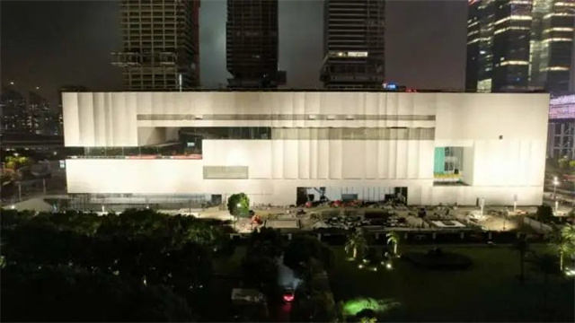 據建設方上海建工集團介紹,在建上海博物館東館近日開始亮燈調試。目前,建筑的外立面及總體景觀照明已基本完成,進入通水通電和調試階段。室內裝修、室外總體等施工也正有序推進。上博東館預計今年年底完成竣工驗收目標。
